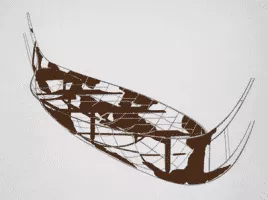 The Hjortspring boat is a vessel designed as a large canoe, from the Scandinavian Pre-Roman Iron Age. It was built circa 400–300 BCE. The hull and remains were rediscovered and excavated in 1921–1922 from the bog of Hjortspring Mose on the island of Als in Sønderjylland, southern Denmark.