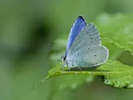 The holly blue is a butterfly that belongs to the lycaenids or blues family and is native to Eurasia and North America. The holly blue has pale silver-blue wings spotted with pale ivory dots.