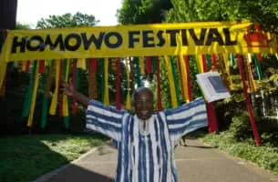 Homowo is a festival celebrated by the Ga people of Ghana. The festival starts in the month of May with the planting of crops before the rainy season starts. During the festival, they perform a dance called Kpanlogo.