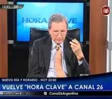 “Hora clave” fue un ciclo periodístico conducido por Mariano Grondona. En cada emisión el conductor recibía a diversos actores de la vida social con el objetivo de reflexionar sobre temas de la actualidad política del país. El programa fue emitido semanalmente por ATC entre los años 1989 y 1991.