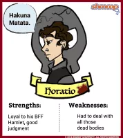 Horatio is a character in William Shakespeare's tragedy Hamlet. He was present on the field when King Hamlet defeated Fortinbras, and he has travelled to court from the University of Wittenberg for the funeral of King Hamlet.