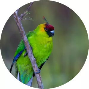 The horned parakeet is a species of parrot in the genus Eunymphicus, in the family Psittaculidae. Eunymphicus cornutus is a medium-sized parrot endemic to New Caledonia. It is called "horned" because it has two black feathers that protrude from the head and have red tips.