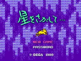 Hoshi wo Sagashite. . . is a 1988 adventure game for the Sega Master System. The game revolves around a dog-like alien creature and his family.