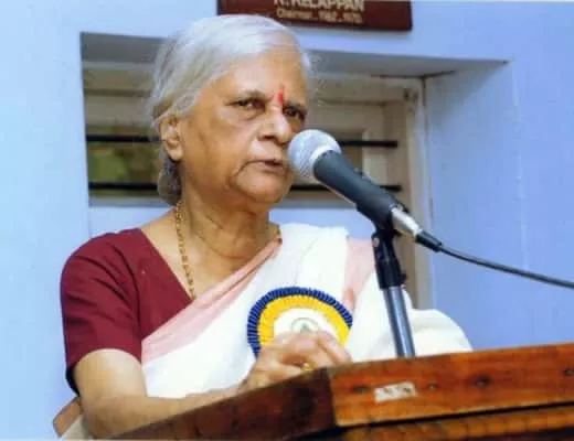 Hridayakumari was an Indian writer, educator, scholar, translator, and orator. She wrote primarily in the Malayalam language, and in 1991, was awarded the Kerala Sahitya Academy Award for her book, Kalpanikatha.