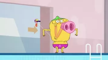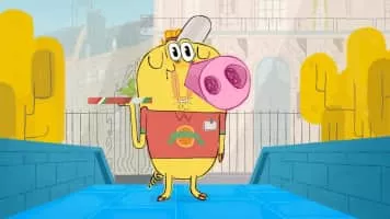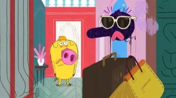 Takako the fly messes up the plans of clean-cut Hubert the pig.