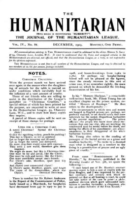 The Humanitarian League was a British radical advocacy group formed by Henry S. Salt and others to promote the principle that it is wrong to inflict avoidable suffering on any sentient being. It was based in London and operated between 1891 and 1919.