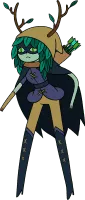 Huntress Wizard is one of the competitors in the Wizard Battle in the episode "Wizard Battle." She is seen in "Reign of Gunters" hanging out in front of the magical item shop in Wizard City, and talks briefly to the Ice King.