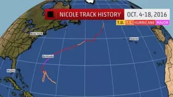 Hurricane Nicole was the first major hurricane to directly impact Bermuda since Hurricane Fabian in 2003 as equally one of the strongest hurricanes to do so. The fourteenth named storm, sixth hurricane and third major hurricane of the 2016 Atlantic hurricane season, Nicole formed in the central Atlantic on October 4.