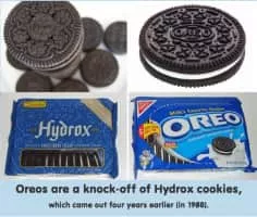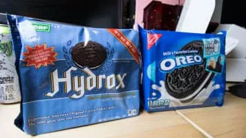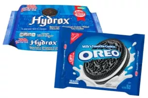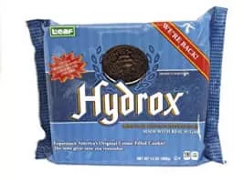 Hydrox is the brand name for a creme-filled chocolate sandwich cookie manufactured by Leaf Brands. It debuted in 1908, and was manufactured by Sunshine Biscuits for over 90 years. The similar Oreo cookie, introduced in 1912, was inspired by the Hydrox.
