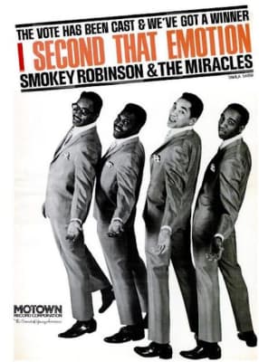 "I Second That Emotion" is a 1967 song written by Smokey Robinson and Al Cleveland. First charting as a hit for Smokey Robinson and the Miracles on the Tamla/Motown label in 1967, "I Second That Emotion" was later a hit single for the group duet Diana Ross & the Supremes and The Temptations, also on the Motown label.