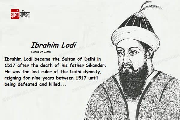Ibrahim Khan Lodi was the last Sultan of the Delhi Sultanate, who became Sultan in 1517 after the death of his father Sikandar Khan Lodi.