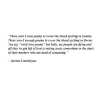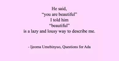 Ijeoma Umebinyuo is a poet from Nigeria and considered one of Sub-Saharan Africa’s best modern poets. She started writing at the age of seven and her short stories and poems have appeared in publications such as The Stockholm Review of Literature, The Rising Phoenix Review and The MacGuffin.