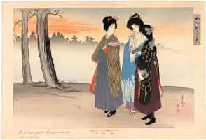 Ikeda Shoen (1886-1917) was a Japanese-style painter in Tokyo, who studied under Mizuno Toshkata and others. Her husband was Ikeda Terukata. She was well known as a painter of Beauty with Uemura Shoen. We regularly organize museum-quality exhibitions of contemporary Japanese artists.