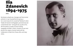 Ilia Mikhailovich Zdanevich, known as Iliazd, was a Polish and Georgian writer, artist and publisher, and an active participant in such avant-garde movements as Futurism and Dada.