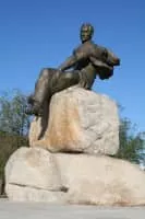 Ilyas Zhansugurov was a Kazakh poet and writer. He made a significant contribution to the development of national poetic culture, creatively developed the traditions of Kazakh oral folk art. The town of Zhansugirov in Almaty Province is named after him and he is commemorated in Taldykorgan and Almaty.