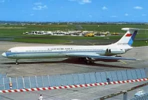 The Ilyushin IL-62 is a Soviet long-range narrow-body jetliner conceived in 1960 by Ilyushin. As successor to the popular turboprop Il-18 and with capacity for almost 200 passengers and crew, the Il-62 was the world's largest jet airliner when first flown in 1963.