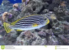 The Indian Ocean oriental sweetlips, Plectorhinchus vittatus, is a species of grunt native to the Indian Ocean and the western Pacific Ocean. This species can be found on both coral and rock reefs at depths from 2 to 25 m.