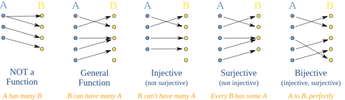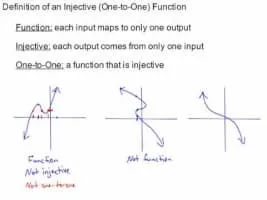 In mathematics, an injective function is a function that maps distinct elements of its domain to distinct elements of its codomain. In other words, every element of the function's codomain is the image of at most one element of its domain.