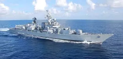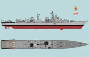 INS Mumbai is the third of the Delhi-class guided-missile destroyers in active service with the Indian Navy. Mumbai was built at Mazagon Dock Limited in her namesake city Mumbai, launched in 1995, and commissioned in 2001. The ship's crest depicts the gateway entrance to INS Angre.