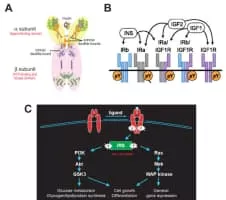 The insulin receptor is a transmembrane receptor that is activated by insulin, IGF-I, IGF-II and belongs to the large class of tyrosine kinase receptors.