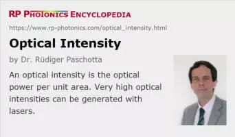 In physics, intensity is the power transferred per unit area, where the area is measured on the plane perpendicular to the direction of propagation of the energy. In the SI system, it has units watts per square metre.