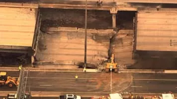 A massive fire collapsed a bridge on Interstate 85 in Atlanta, Georgia on the evening of March 30, 2017. After the 92-foot-long section collapsed, I-85 was closed to traffic for approximately two miles between its split with I-75 and the interchange with State Route 400.