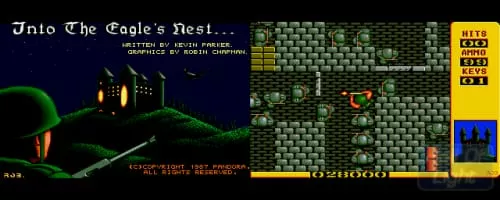Into the Eagle's Nest is a video game developed by Pandora and published for Amiga, Amstrad CPC, Apple II, Atari 8-bit family, Atari ST, Commodore 64, IBM PC, and ZX Spectrum starting in 1987.