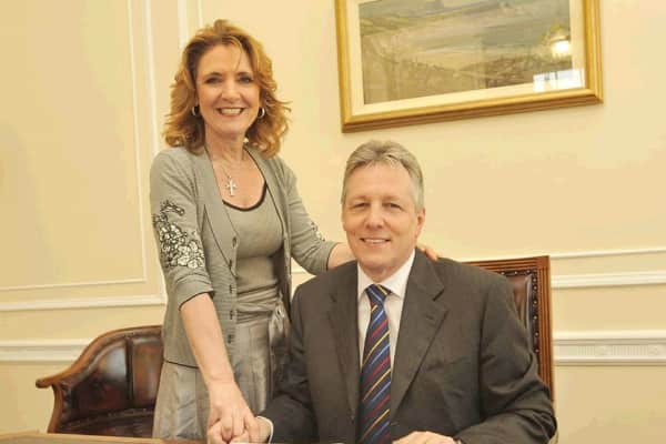 Iris Robinson is a former Democratic Unionist Party politician in Northern Ireland. She is married to Peter Robinson, who was First Minister of Northern Ireland from 2008 to 2016. Robinson was first elected councillor for Castlereagh Borough Council in 1989, and served as Mayor in 1992 and 1995.