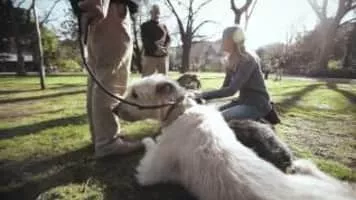 The Irish Wolfhound is a historic sighthound dog breed from Ireland that has by its presence and substantial size inspired literature, poetry and mythology. Like all large sighthounds, it was used to pursue game by speed, famed as a guardian dog, specialising in protection against and the hunting of wolves.