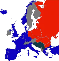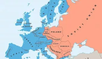 The Iron Curtain was in the first place a non-physical boundary dividing Europe into two separate areas from the end of World War II in 1945 until the end of the Cold War in 1991.