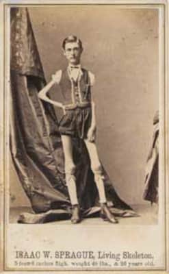Isaac W. Sprague was an entertainer and sideshow performer, billed as the living human skeleton.