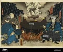 Ishikawa Goemon was a legendary Japanese outlaw hero who stole gold and other valuables to give to the poor. He and his son were boiled alive in public after their failed assassination attempt on the Sengoku period warlord Toyotomi Hideyoshi.