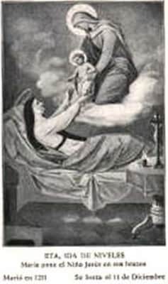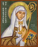 Itta of Metz, O.S.B. was the wife of Pepin of Landen, Mayor of the Palace of the Kingdom of Austrasia. After his death, she founded the Abbey of Nivelles, where she became a Colombanian nun along with her daughter, Gertrude of Nivelles. Both are honored as saints by the Catholic Church.