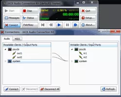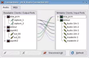 JACK Audio Connection Kit is a professional sound server daemon that provides real-time, low-latency connections for both audio and MIDI data between applications that use its API.