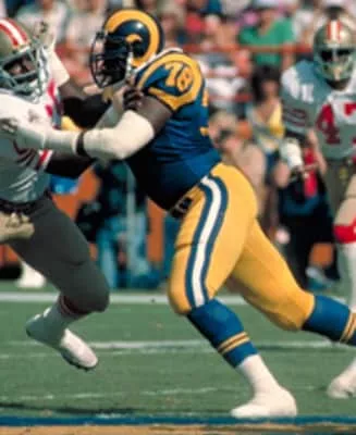Jackie Ray Slater, nicknamed "Big Bad Jackie", is an American former professional football player who was an offensive tackle for 20 seasons in the National Football League. He played his entire career with the Rams franchise: 19 seasons in Los Angeles, from 1976–1994, and one in St. Louis in 1995.