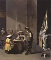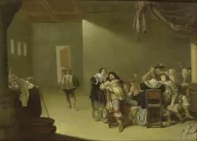 Jacob Duck was a Dutch painter and etcher. Duck is thought to have been born in Utrecht. From 1611, he was trained in Utrecht to become a goldsmith, in which craft he became a master in 1619. From 1621 he took drawing lessons from Joost Cornelisz Droochsloot.
