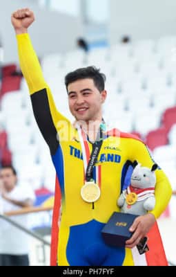 Jai Angsuthasawit is an Australian-Thai track cyclist, who specializes in sprinting events. He won the overall title in the keirin at the 2019–20 UCI Track Cycling World Cup as well as the keirin at the 2018 Asian Games.