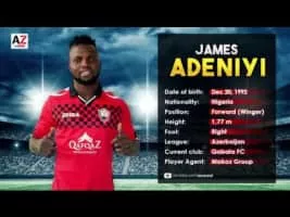 Segun James Adeniyi is a Nigerian professional footballer who plays as a striker for Tuzlaspor in the TFF First League.