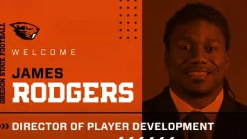 James Rodgers, Jr. is an American football coach and former wide receiver. He signed with the Atlanta Falcons as an undrafted free agent following the 2012 NFL Draft. He played college football for Oregon State University. He has also played for the Montreal Alouettes of the Canadian Football League.