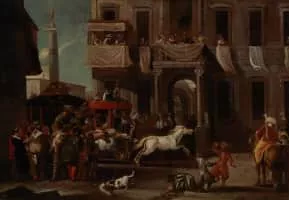 Jan Miel was a Flemish painter and engraver who was active in Italy. He initially formed part of the circle of Dutch and Flemish genre painters in Rome who are referred to as the 'Bamboccianti' and were known for their scenes depicting the lower classes in Rome.