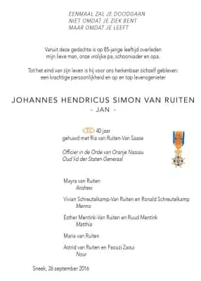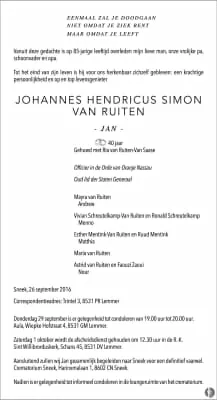 Johannes Hendricus Simon "Jan" van Ruiten was a Dutch businessman and politician. He served in the House of Representatives for the Pim Fortuyn List from 23 May 2002, until 30 January 2003.