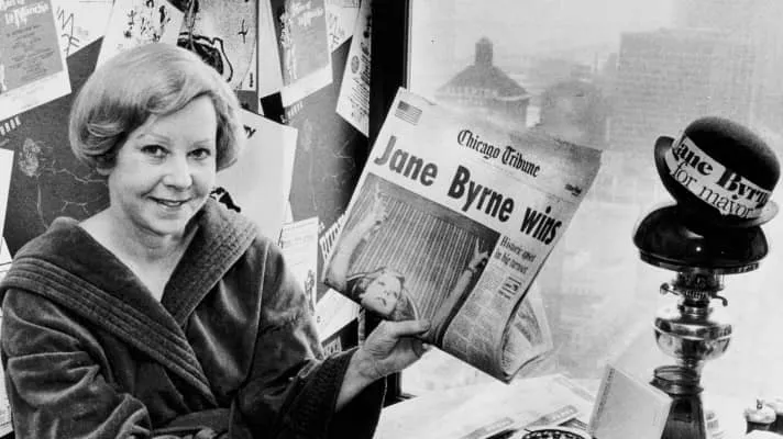 Jane Margaret Byrne was an American politician who was the first woman to be elected mayor of a major city in the United States. She served as the 50th Mayor of Chicago from April 16, 1979, until April 29, 1983.
