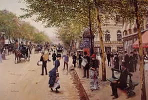 Jean Béraud was a French painter renowned for his numerous paintings depicting the life of Paris, and the nightlife of Paris society. Pictures of the Champs Elysees, cafés, Montmartre and the banks of the Seine are precisely detailed illustrations of everyday Parisian life during the "Belle Époque".