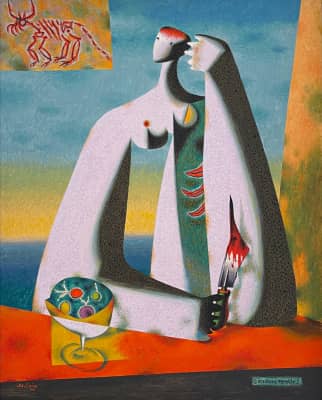 Jean-Philippe Dallaire was one of the leading artists working figuratively in the 1960s in Canada. He is known for his festive scenes peopled by macabre characters.