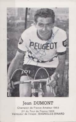 Jean Dumont is a French former professional road bicycle racer. His sporting career began with A.S.E.B Lyon. Dumont won stage 5B of the 1968 Tour de France.