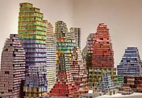 Jean Shin is an American artist living in Brooklyn, NY. She is known for creating elaborate sculptures and site-specific installations using accumulated cast-off materials.