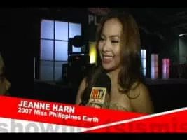Jeanne Angeles Harn is a Filipino fashion and ramp model, environmentalist, and beauty queen. She competed and won the national beauty pageant Miss Philippines Earth 2007. She was crowned by Miss Philippines Earth 2006 Cathy Untalan.