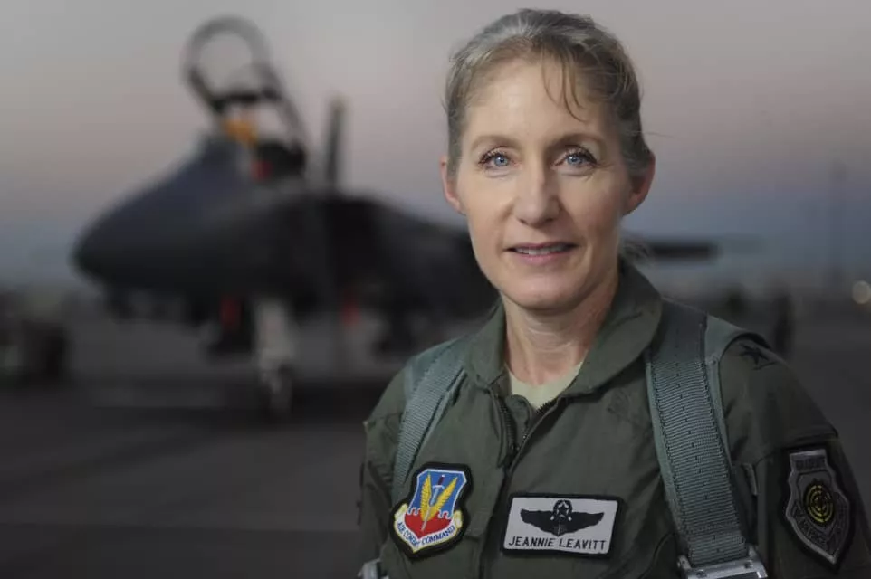 Jeannie Marie Leavitt is a retired United States Air Force general officer. She became the U.S. Air Force's first female fighter pilot in 1993, and was the first woman to command a USAF combat fighter wing.
