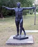 Jean-Robert Ipoustéguy, a figurative French sculptor, was born "Jean Robert" in Dun-sur-Meuse. His artwork had a distinct style, combining abstract elements with the human figure, often in the écorché style of French anatomists.
