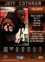 Jeffrey Lance "Jeff" Cothran is a former American football fullback in the National Football League and Arena Football League. He played for the Cincinnati Bengals, Orlando Predators, Detroit Fury and Florida Bobcats.